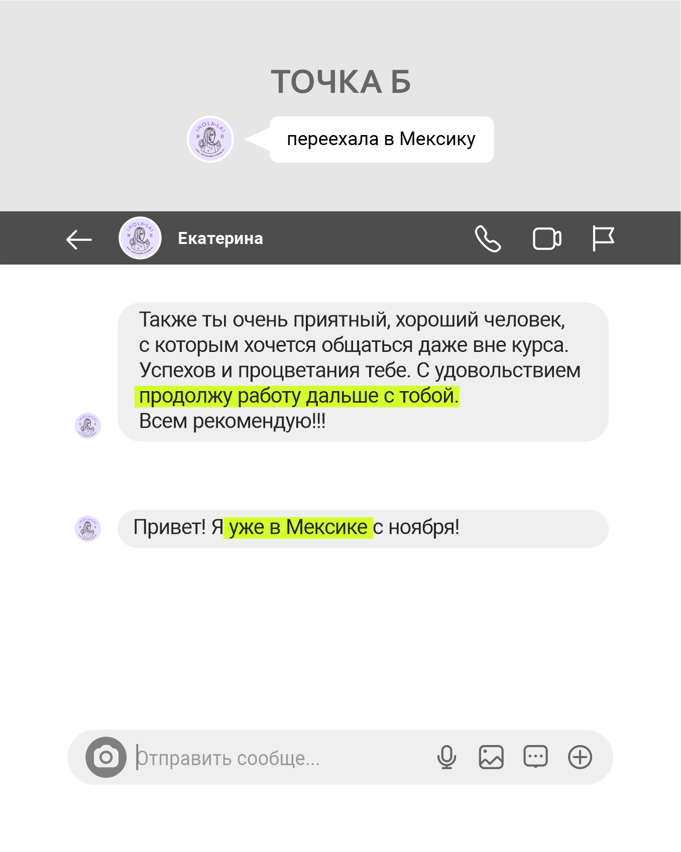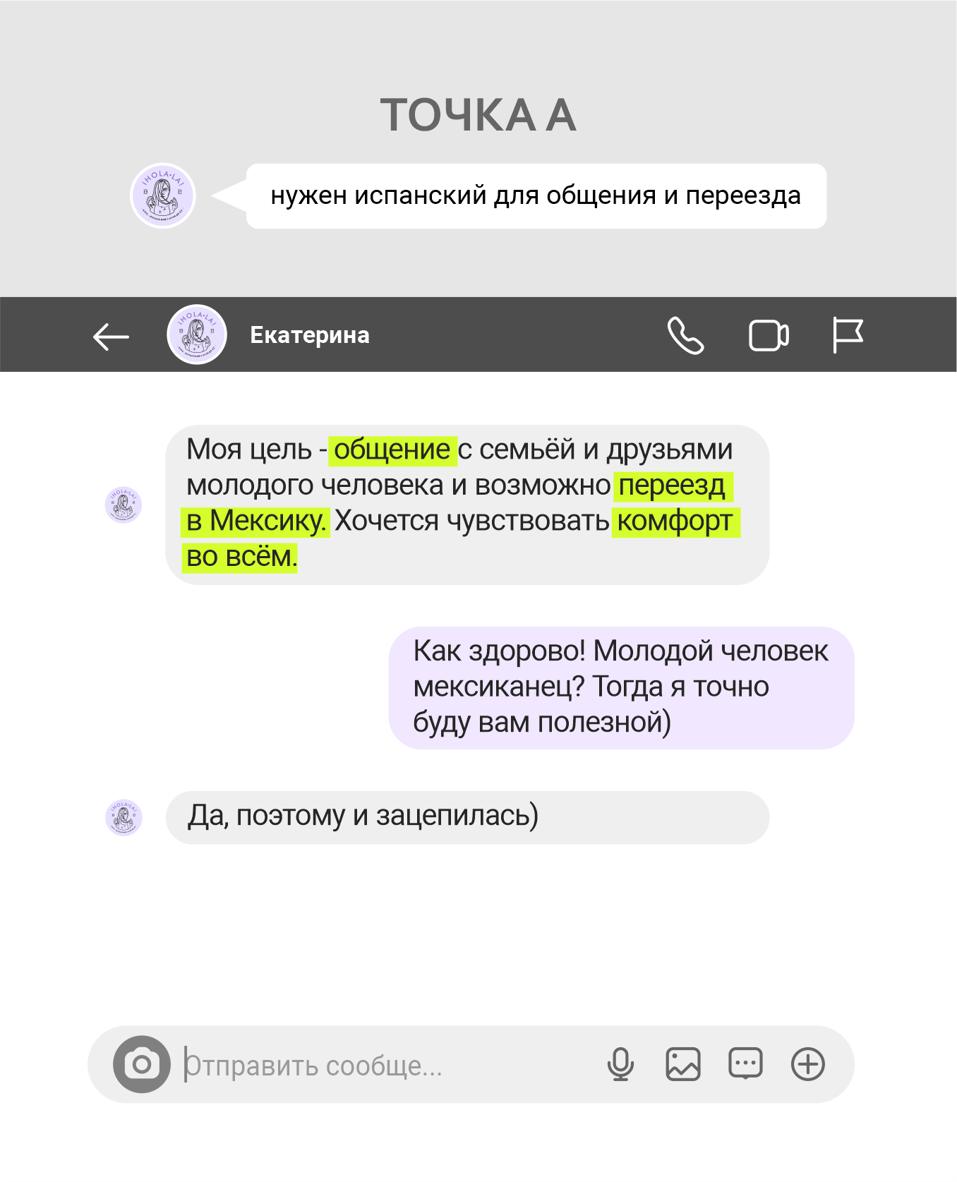 Точка А: в планах был переезд в Мексику, хотелось общаться с семьёй и друзьями молодого человека (мексиканца) и чувствовать комфорт во всём.