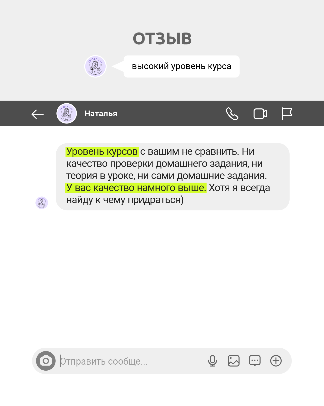А ещё, я хочу отметить обратную связь! Очень подробно всегда и качественно, если что-то не до конца было понятно, всегда помогала и никогда не бросала) Ты очень неравнодушный учитель.
